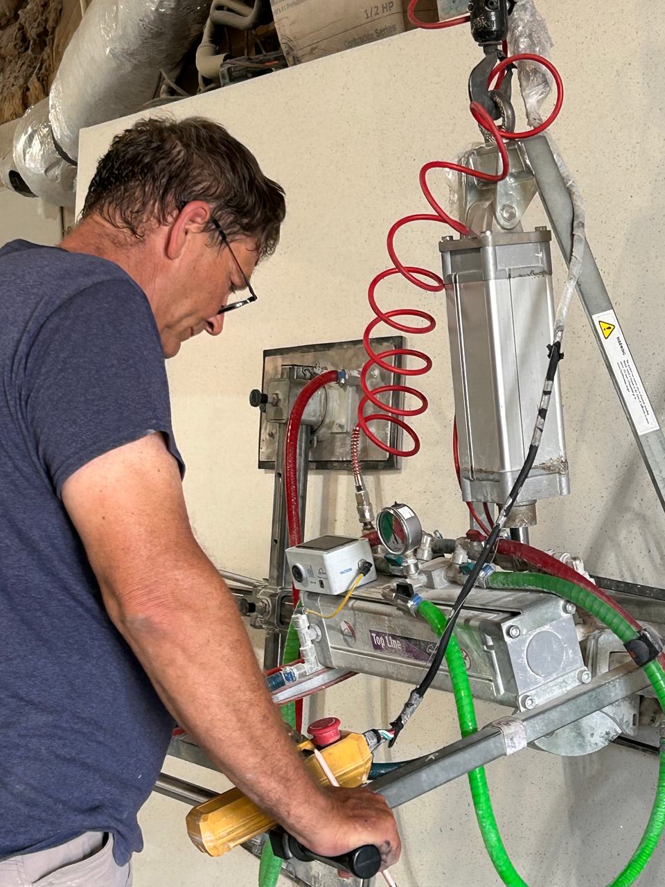 By 2010, Dave brought fabrication fully in-house with the purchase of his first bridge saw. Today, he operates two 5-axis CNC saws, continues to measure and template every job personally, and works alongside his partner of 17 years, Michelle Colangelo-Colonna, who has helped grow the business through relationships and reputation.